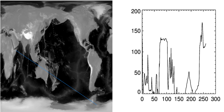 Notice that this method will work even with lines that are not straight! For example, you might let the user select a series of points with the mouse that describes a curved line along the image. This method would also produce a profile of the image values along that curved line.