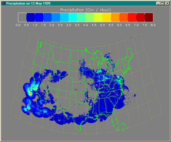 Window, XSize=640, YSize=512, Title='Precipitation on 12 May 1999'