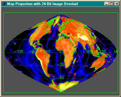 QUESTION: I've read your article on overlaying a 2D image on a map projection, but I have a 24-bit image and Map_Image and Map_Patch only seem to accept 8-bit images. How can I overlay my 24-bit image onto a map projection?
