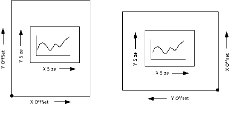 In portrait mode, the point from which PostScript window offsets are calculated is the lower-left corner of the page. The X offset is calculated left-to-right in the direction of the X size of the plot. The Y offset is calculated bottom-to-top in the direction of the Y size of the plot.