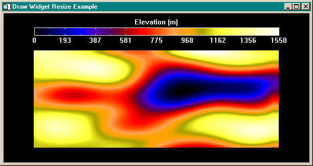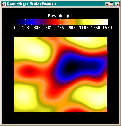 This program is almost identical to the program Resize_Draw discussed above, with just a couple of small changes. First of all, I want to know how much space in the top-level base is taken up by the row of buttons. The buttons are in a row base widget, so this question is really this: How big is the button base? If I know this, I can subtract this amount of space from the top-level base size when I resize the draw widget.
